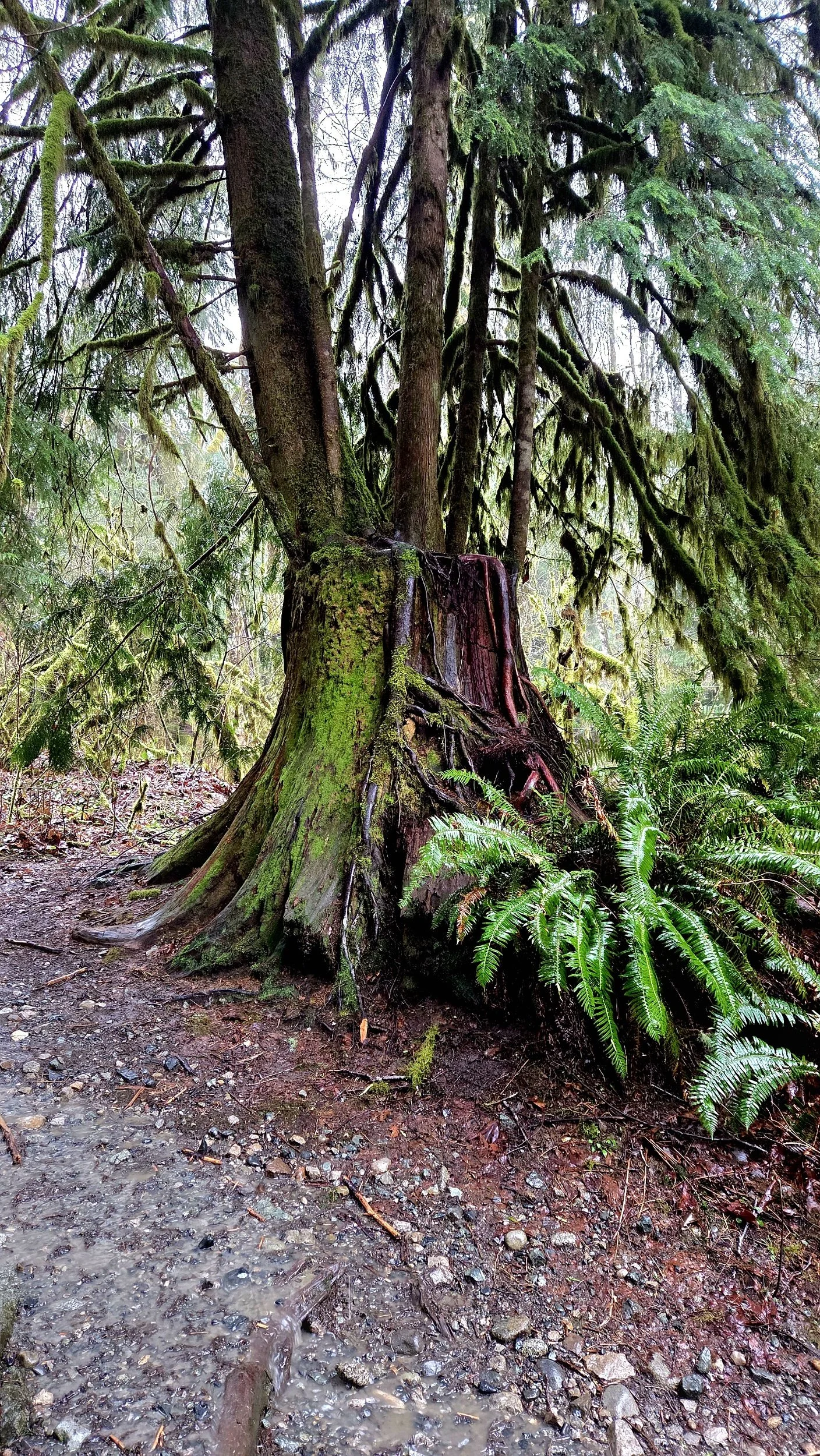 A second nurse stump with multiple trees growing from it it.